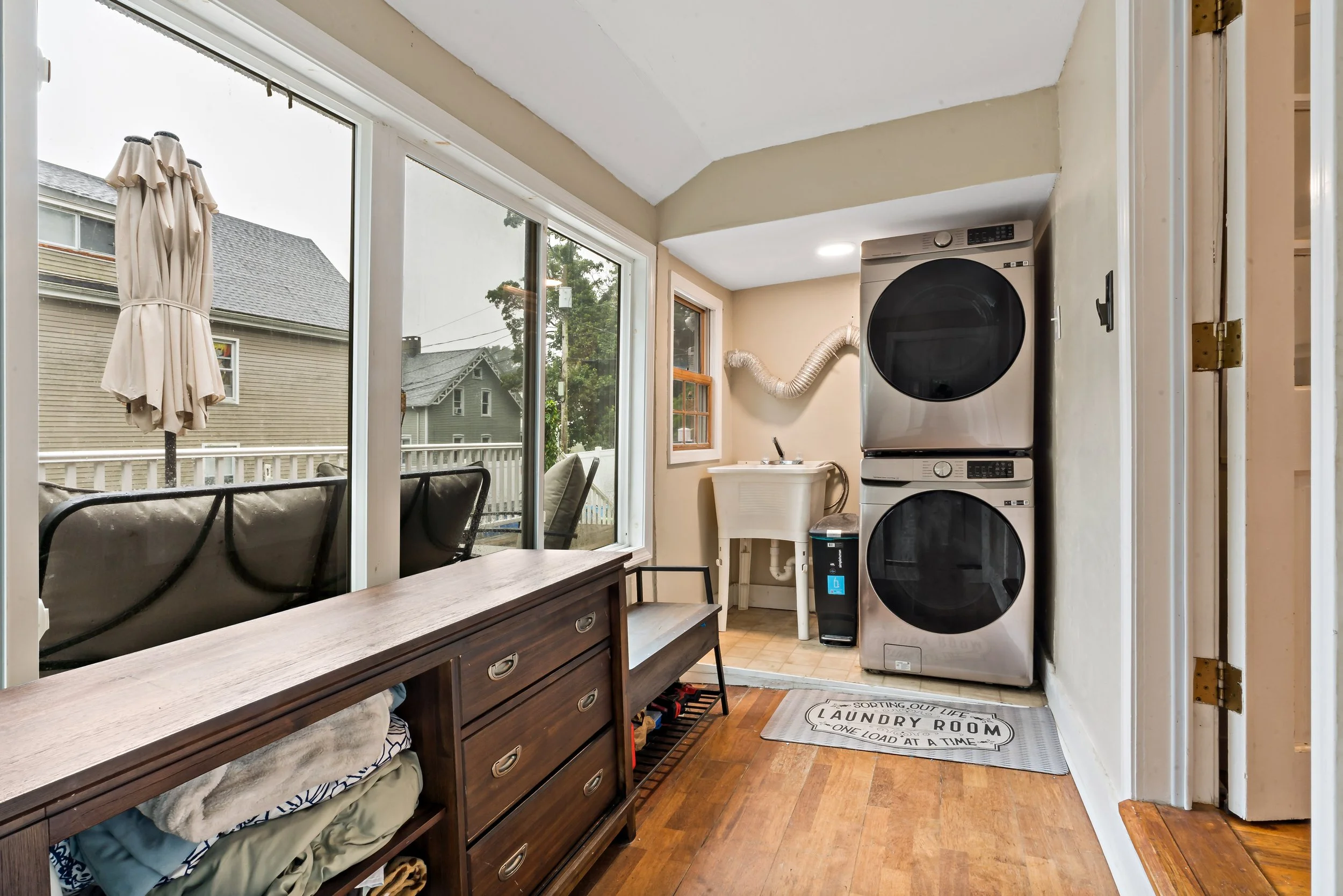 Full bathroom off the kitchen plus a sun porch with laundry hookups