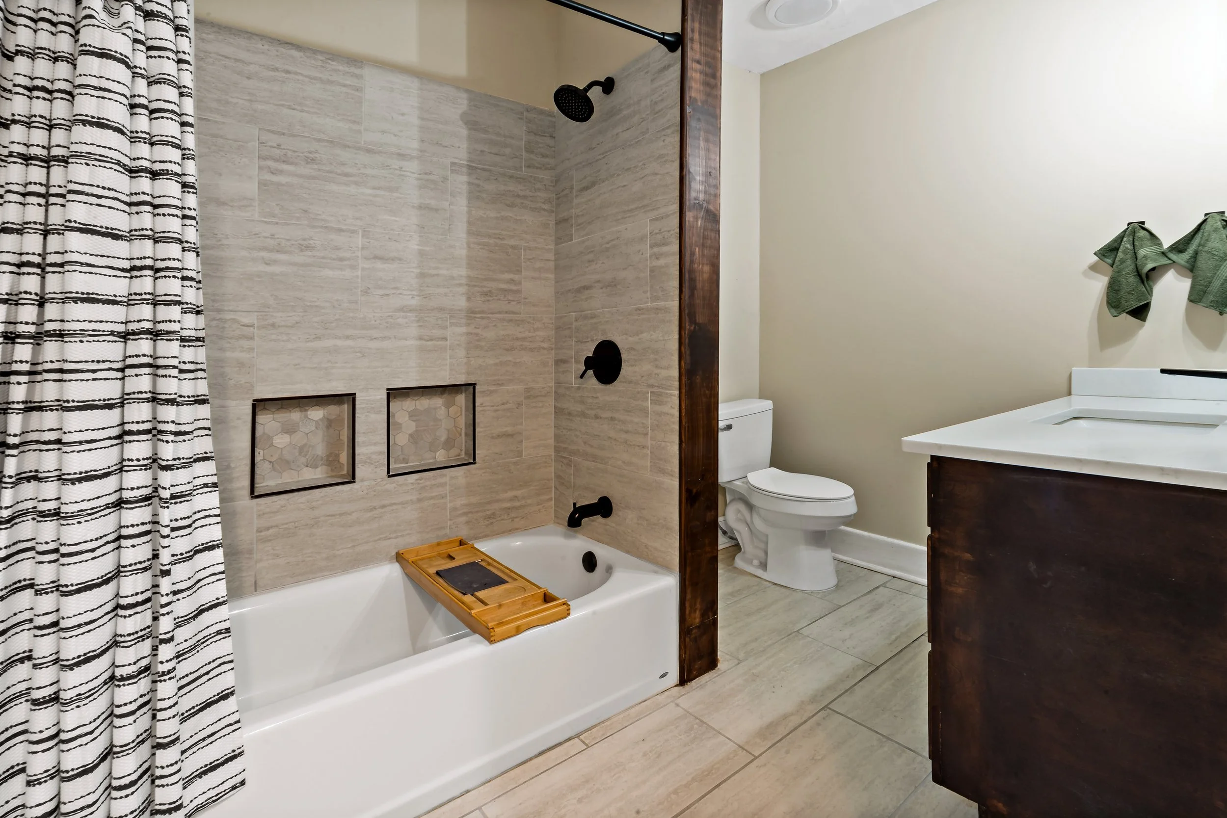3 bedrooms & 3 full bathrooms including a main-floor primary suite with custom walk-through closet & ensuite bath